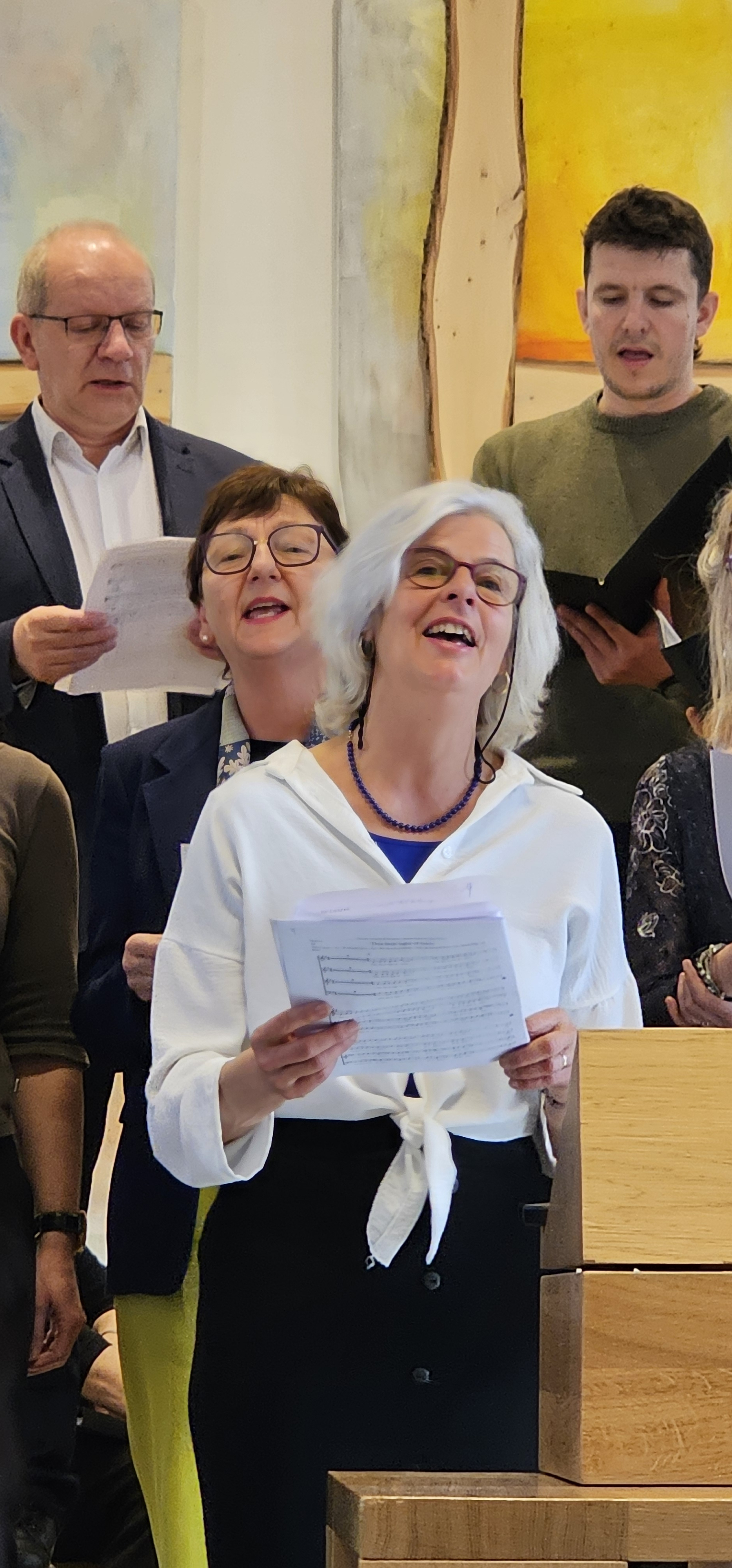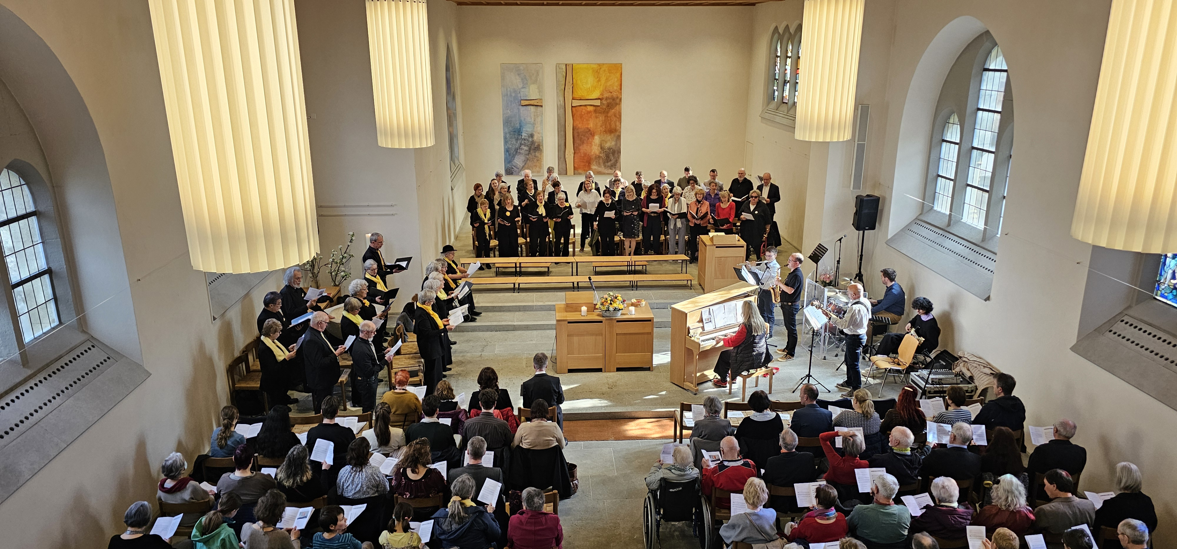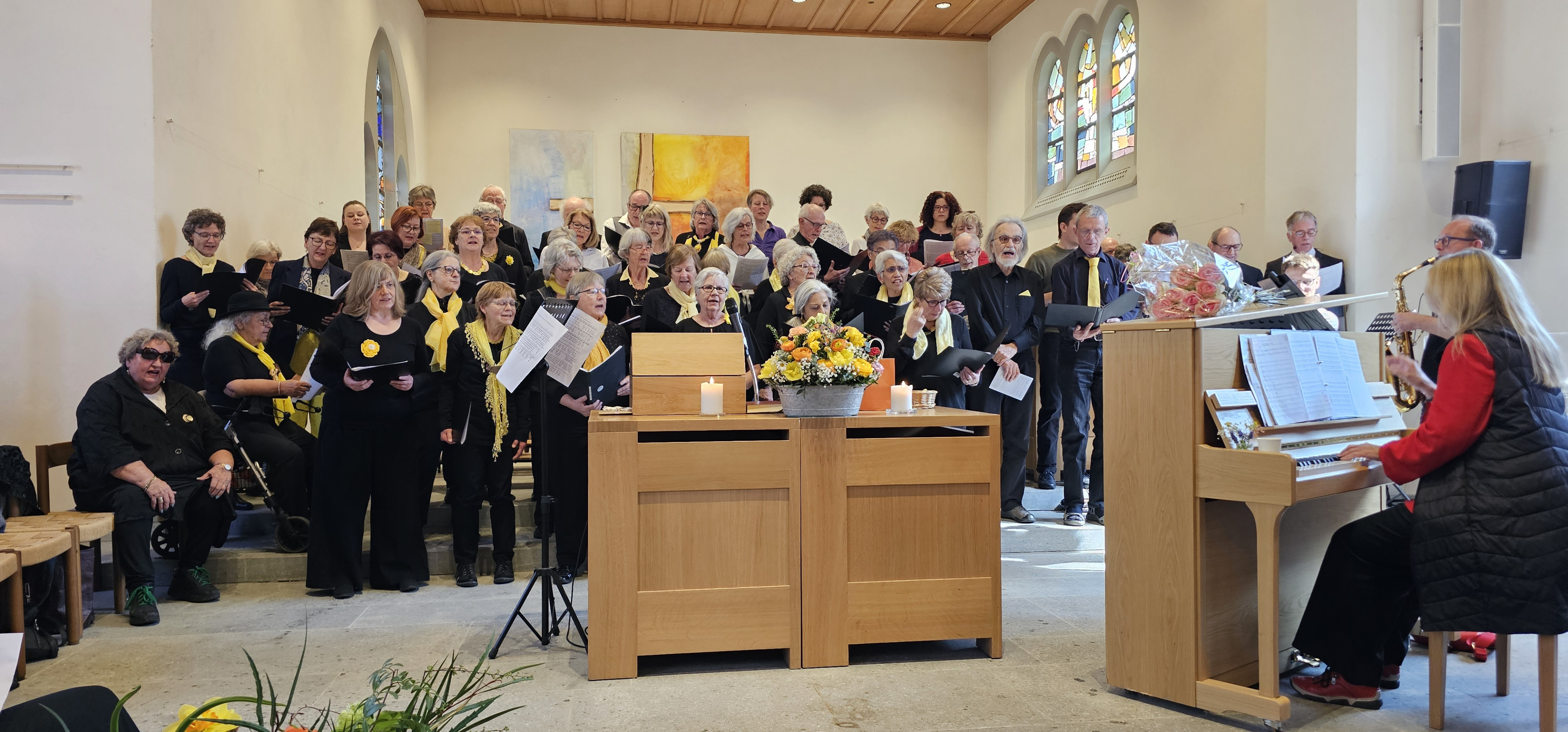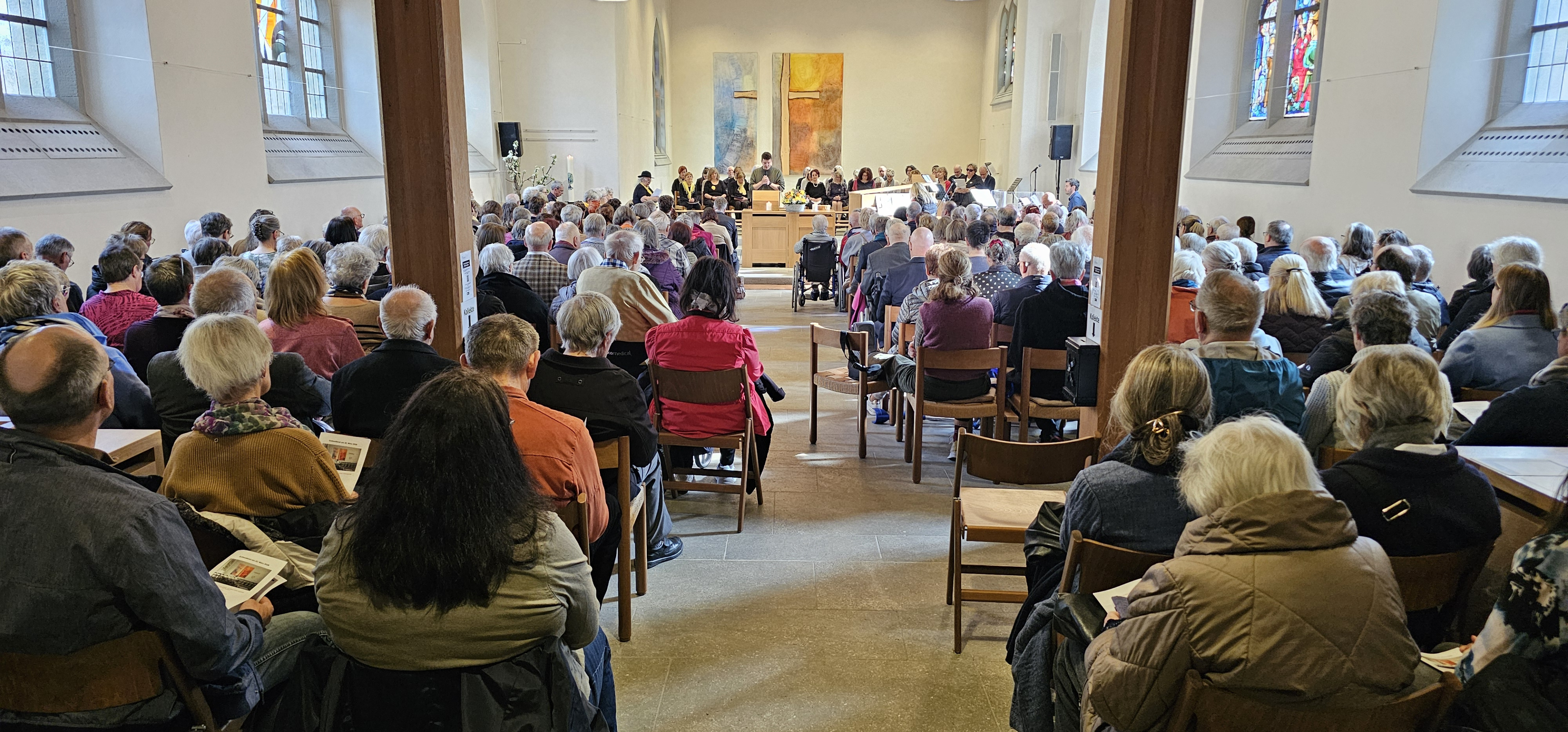 Im weiteren Verlauf der Feier trug ein Projektchor mit einem halben Hundert Sängerinnen und Sängern ein Medley aus „Jesus Christ Superstar“ sowie, zum Teil gemeinsam mit unserem Gospelchor, weitere Songs vor. Dazu gehörte auch „You‘ve got a friend“, mit Ex-Konfirmandin Vanessa Bippus als Solistin. Diese Ode an die Freundschaft, betonte Nina, singe man von Herzen für Leszek.
