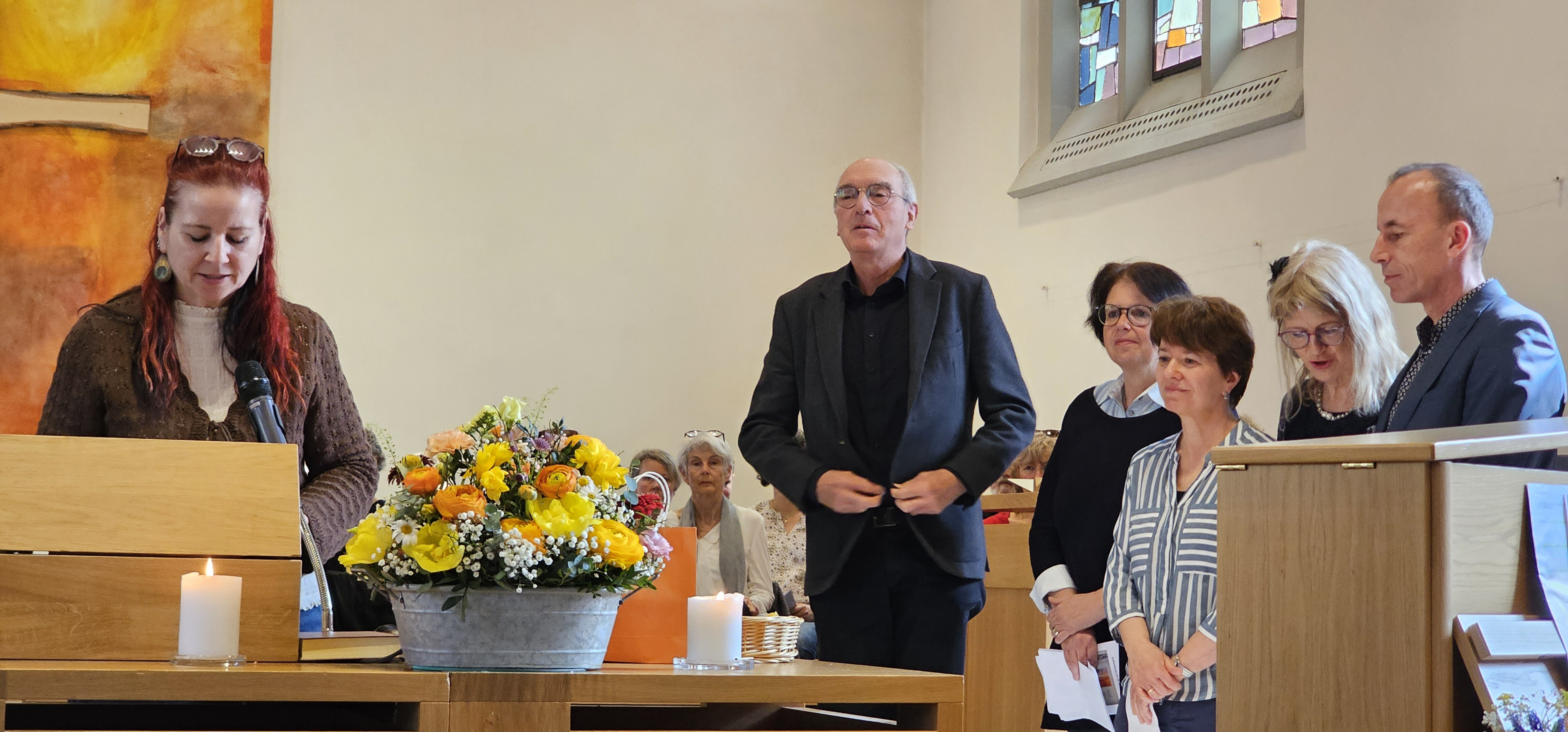 In welchem Ausmass dieser „Nebeneffekt der Hingabe“ in Leszeks Wirken in unserer Kirchgemeinde zum Tragen gekommen ist, zeigte sich in vielen Verlautbarungen im Gottesdienst. Stadtpräsidentin Claudia Rohrer bezog sich in ihrem Grusswort auf ein Zitat der deutsch-US-amerikanischen Philosophin Hannah Ahrendt („Zukunft entsteht dort, wo Menschen bereit sind, Verantwortung für die Welt zu übernehmen“) und hob Leszeks sozial-politisches Engagement hervor; Stadtrat Dominik Burkhart und Tom Steiner – Präsident der lokalen SP und Vizepräsident unserer Kirchenpflege – betonten beide, wie sie die persönlichen Gespräche mit Leszek schätzen: „Deine Suche nach dem richtigen Weg, deine kompromisslose Offenheit im Denken und auch deine Zweifel haben mir mehr mitgegeben, als du dir wahrscheinlich denkst“, sagte Tom. Weiter würdigte er Leszeks pfarramtliche Tätigkeit: Er habe, gemeinsam mit Christine, das Bild der Kirchgemeinde als einer weltoffenen und partizipativen „enorm geprägt“.
