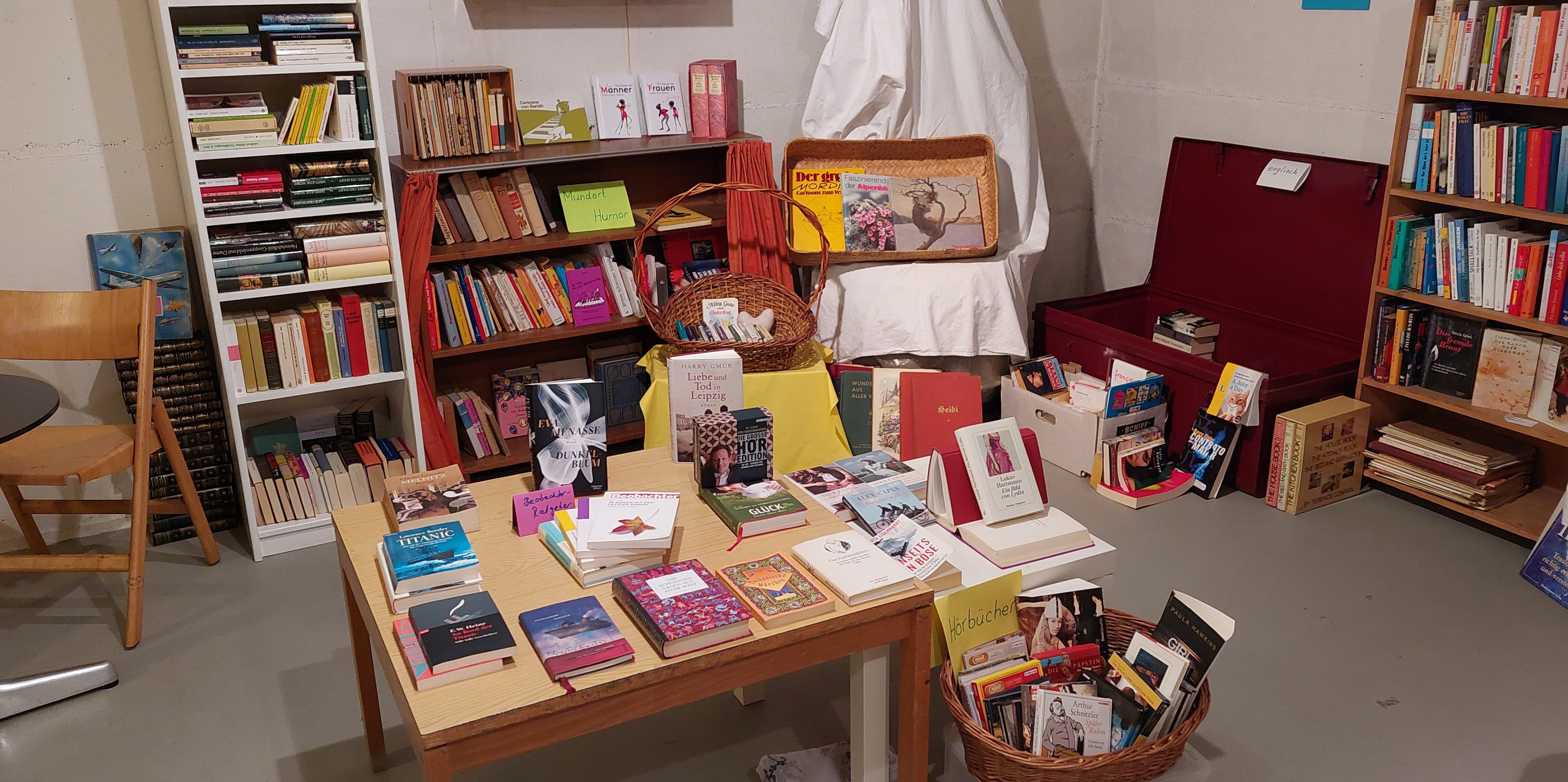 Gleichzeitig fand im Keller ein grosser Markt gebrauchter Bücher statt, schön geordnet und ansprechend dargeboten. Seit Jahren zeichnen sich dafür Susanne Müller Senn und Rosmarie Gschwind verantwortlich.